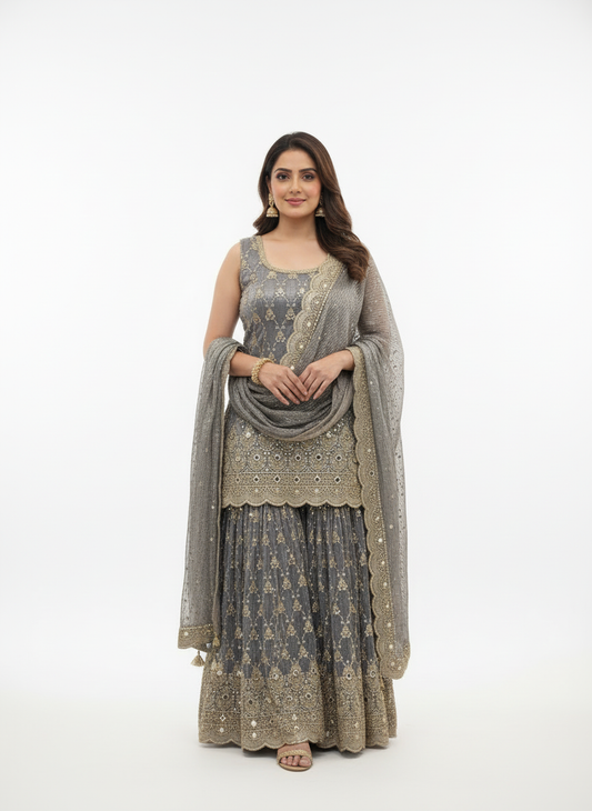 Grey Embroidered Palazzo Suit – Sophisticated, Regal & Perfect for Every Celebration
