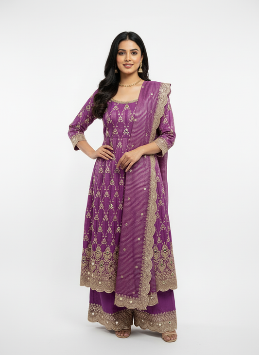 Elegant Purple Embroidered Anarkali Set – A Perfect Blend of Tradition & Luxury