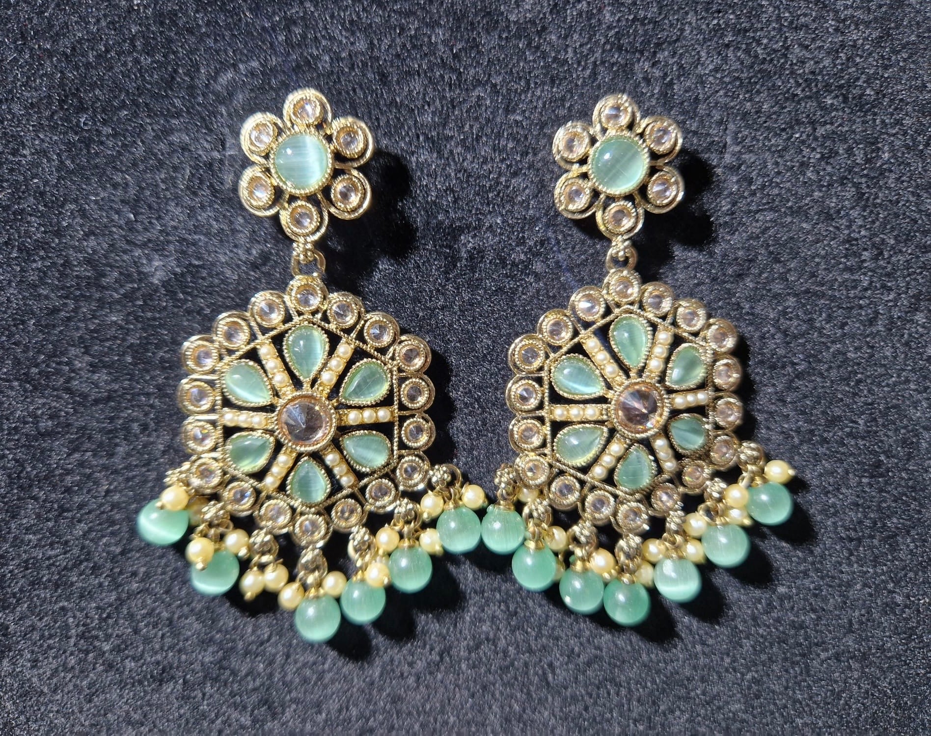 Mint Green & Gold Traditional Kundan Dangle Earrings